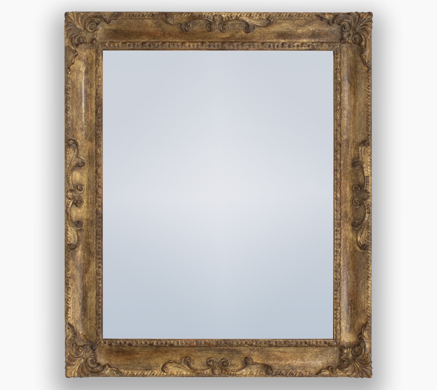 Miroir avec cadre doré et finition patinée antique en bois, idéal pour sublimer n'importe quel intérieur et pour insérer un objet de valeur dans un meuble.