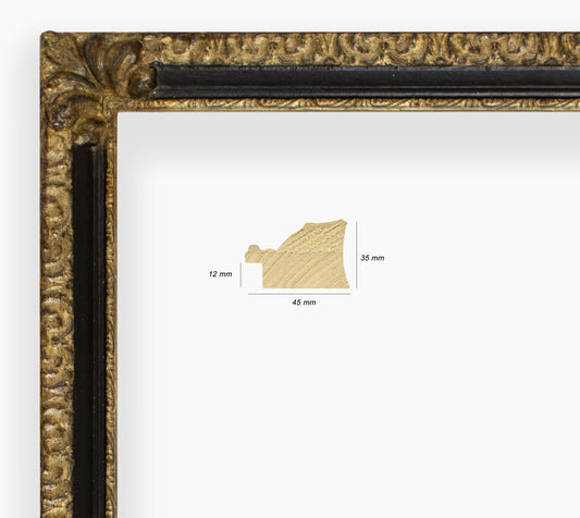 COR.227.601 cadre en bois à la feuille d'or gorge noire