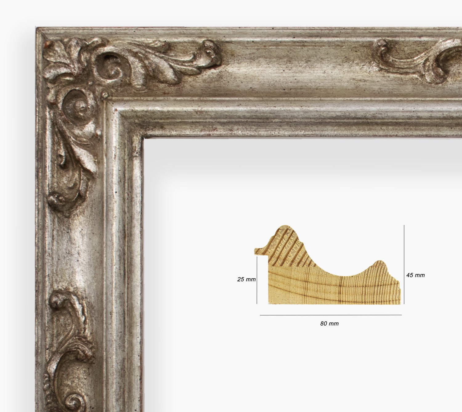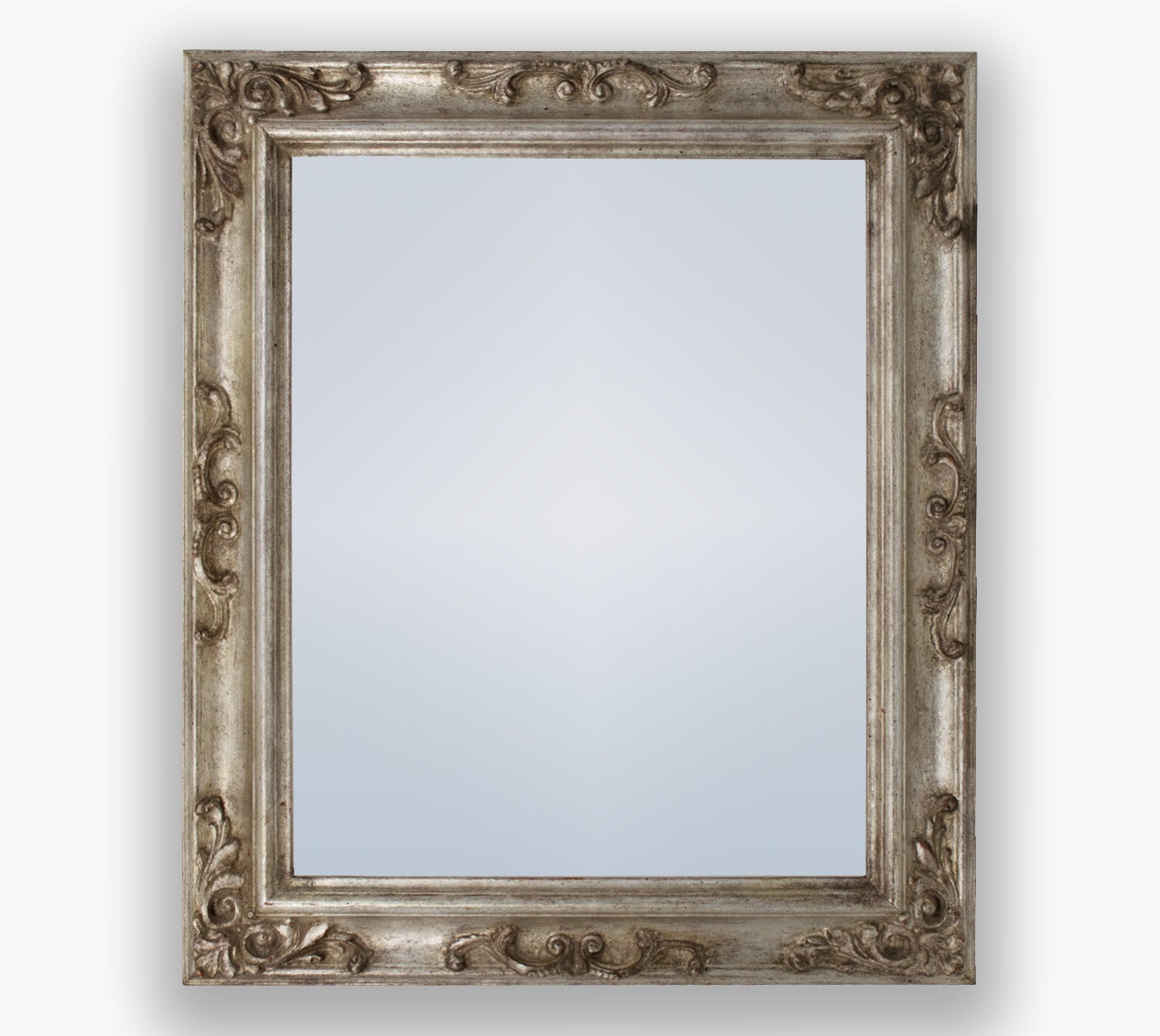 Miroir avec cadre argent et finition patinée,cadre en bois, idéal pour sublimer n'importe quel intérieur et pour insérer un objet de valeur dans un meuble.
