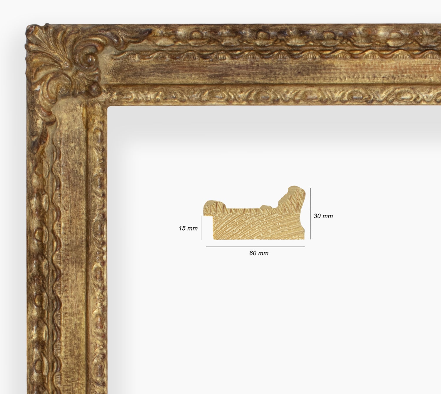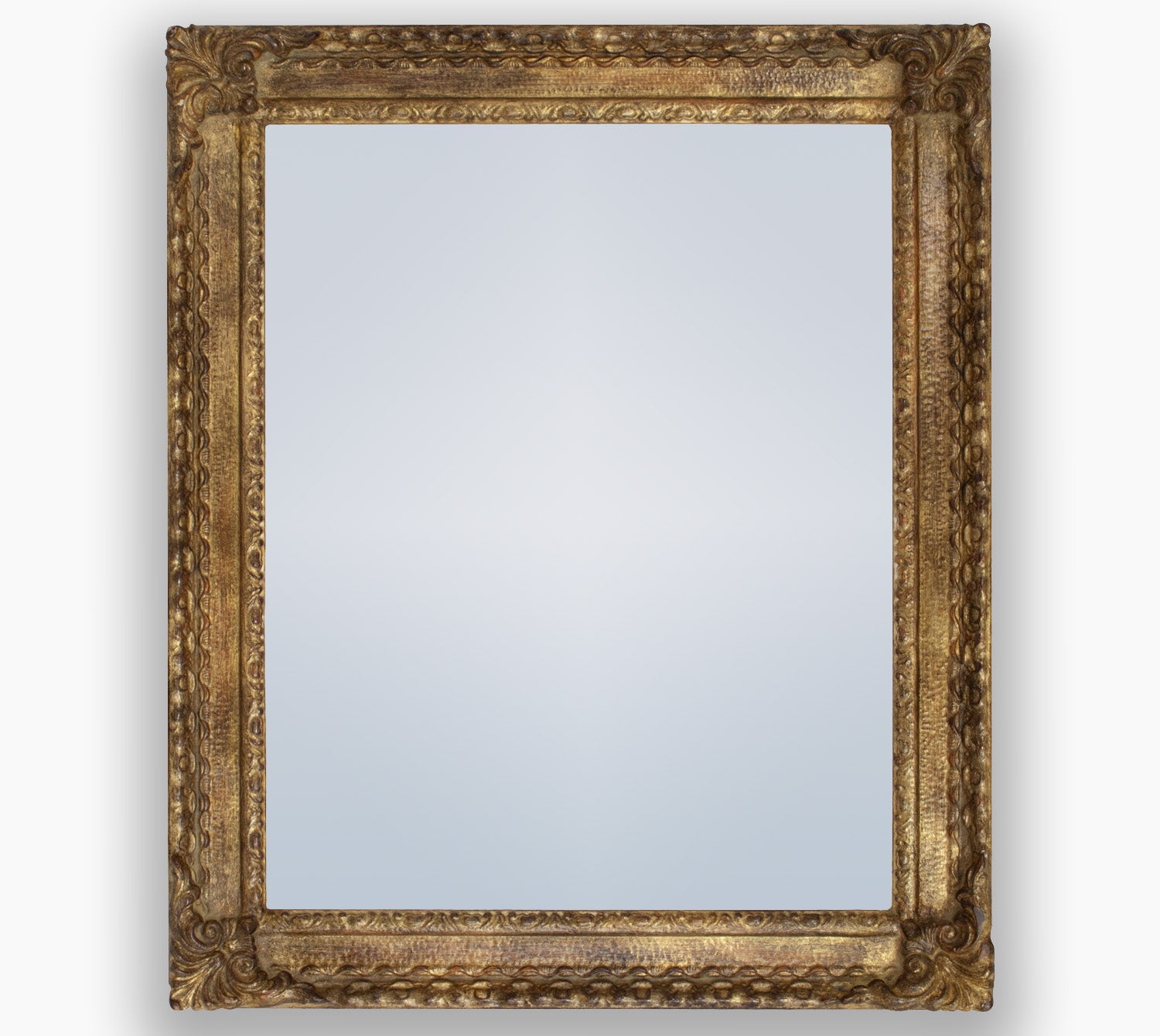 Miroir avec cadre doré et finition patinée antique en bois, idéal pour sublimer n'importe quel intérieur et pour insérer un objet de valeur dans un meuble.