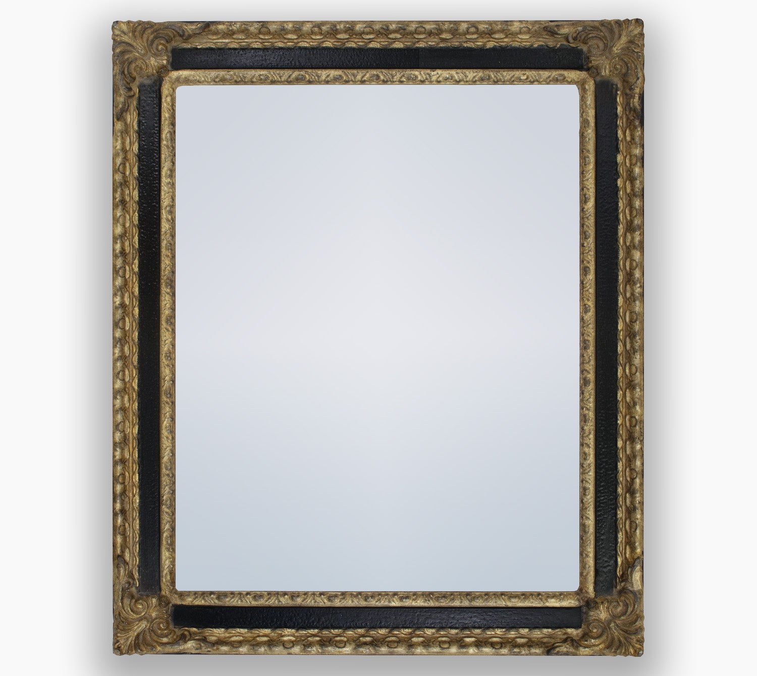 Miroir avec cadre noir et or et finition patinée, cadre en bois, idéal pour sublimer n'importe quel intérieur et pour insérer un objet de valeur dans un meuble.
