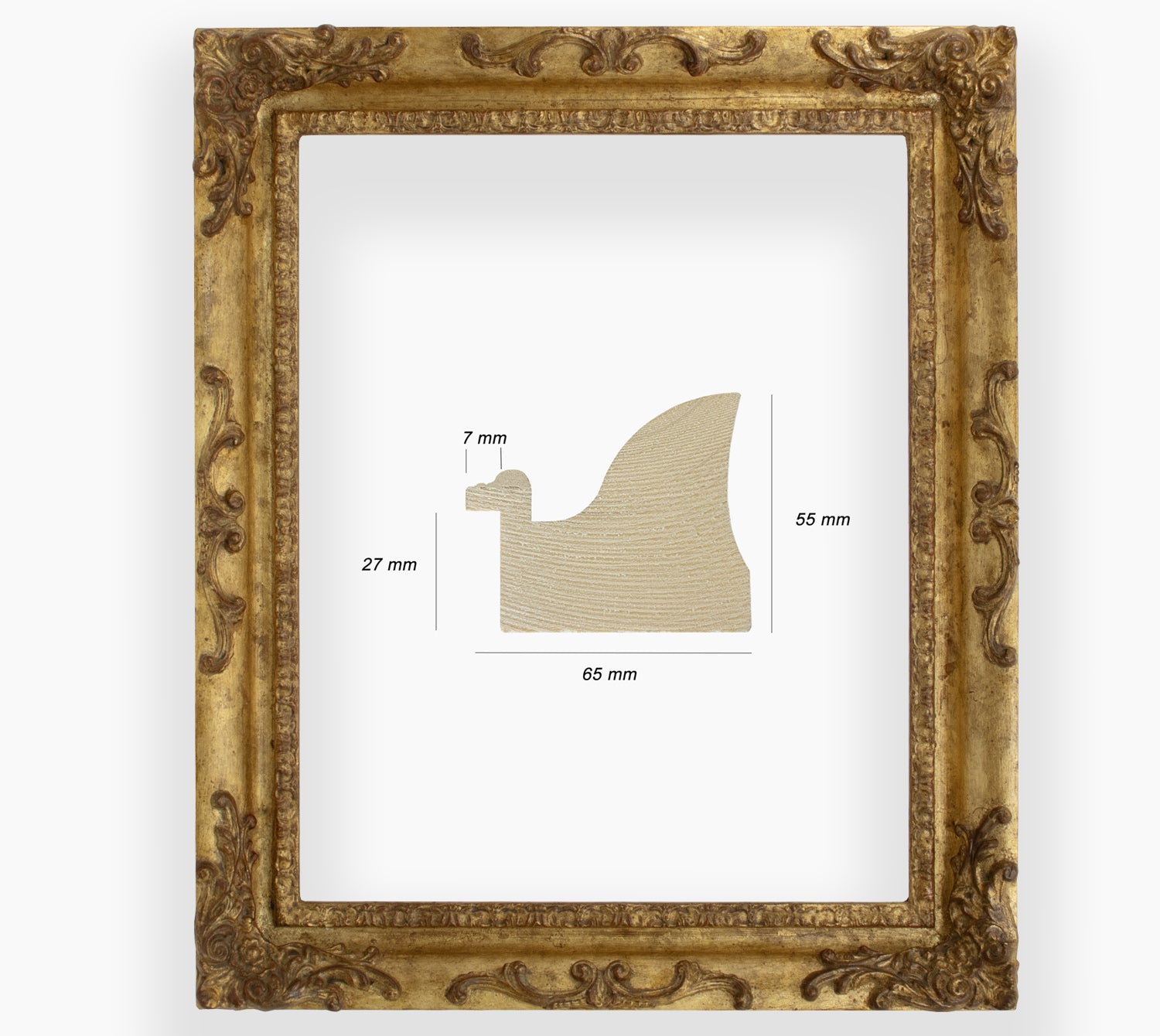Baroque frame with gold leaf, finely hand-worked frame suitable for the framing work that you wish to highlight. Frame suitable for framing old and classic paintings, beautiful mirrors can also be created.