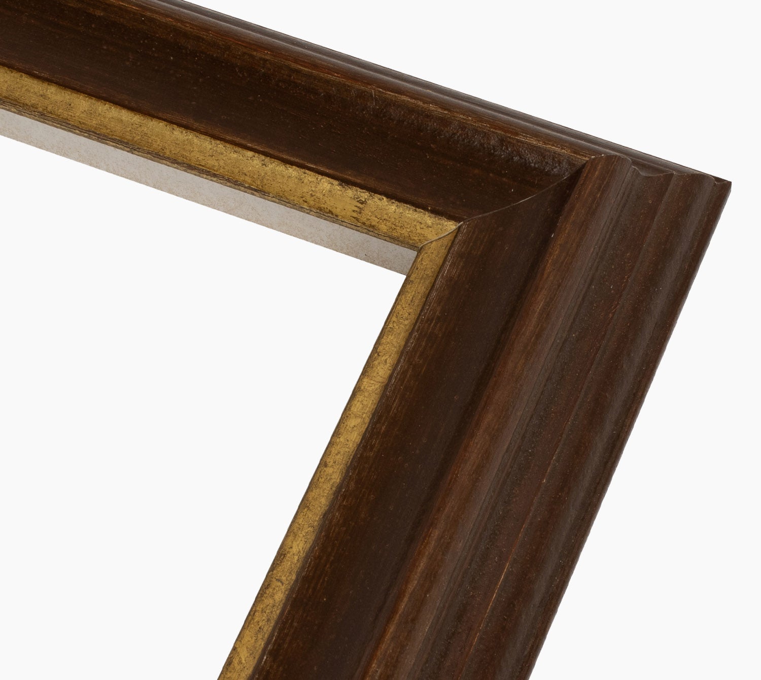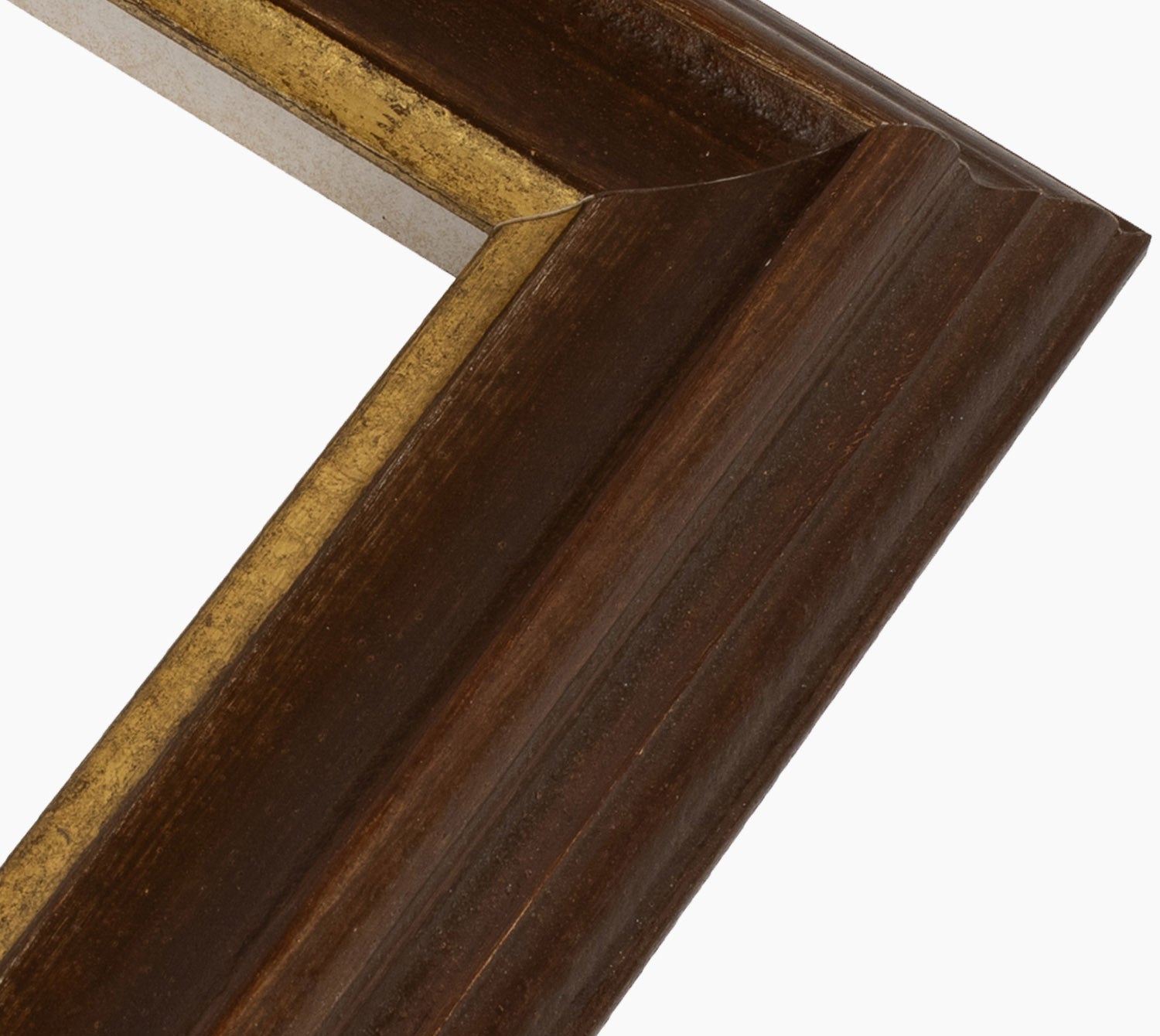 Walnut finish frame with gold leaf thread, handmade wooden frame and wax finish.